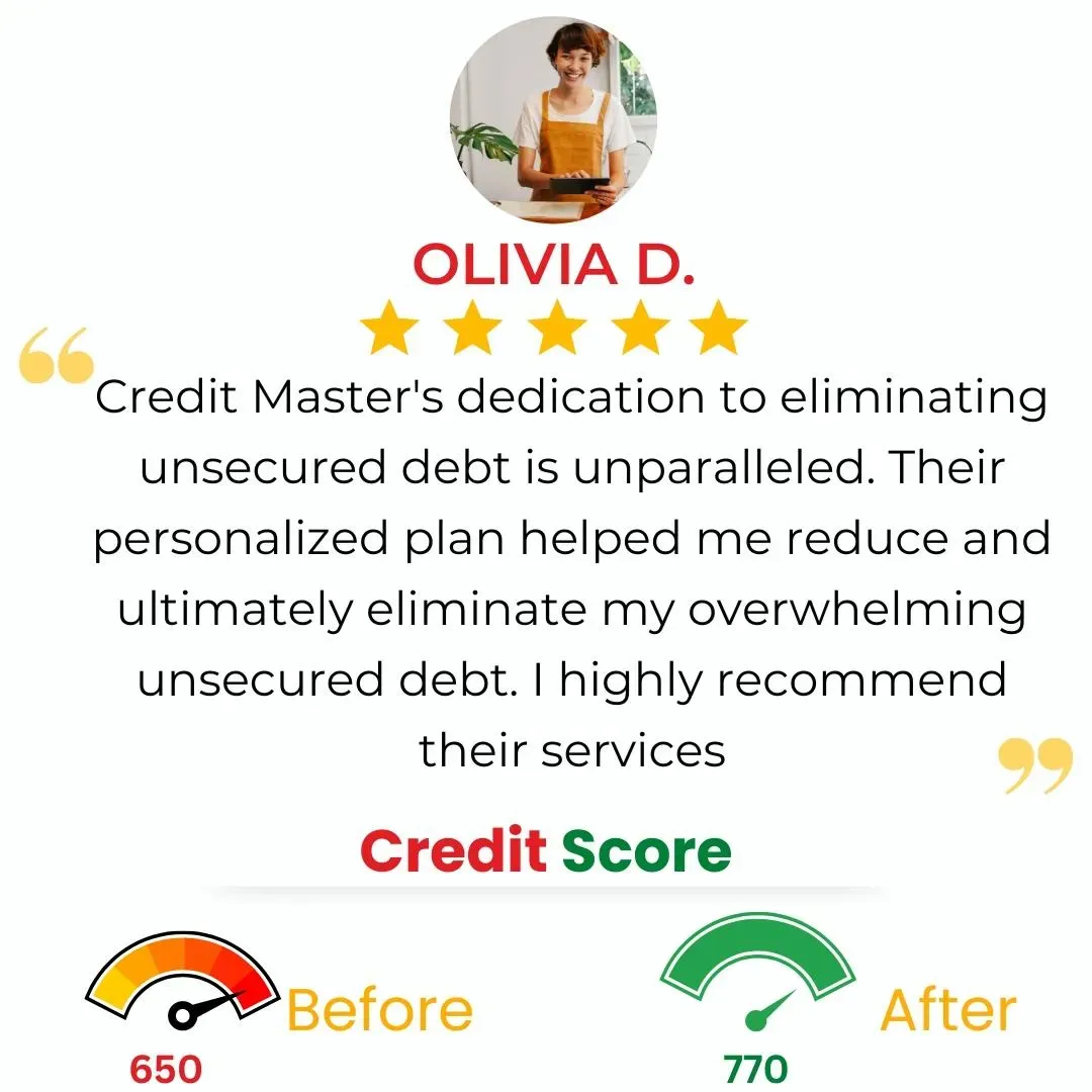 Unsecured debt can be overwhelming, but our credit repair experts are here to help. We'll work with you to identify areas for improvement and create a personalized plan to reduce or eliminate unsecured debt.